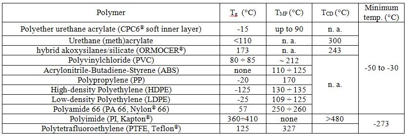 The typical temperature limits for polymers commonly used for fibre coating are: